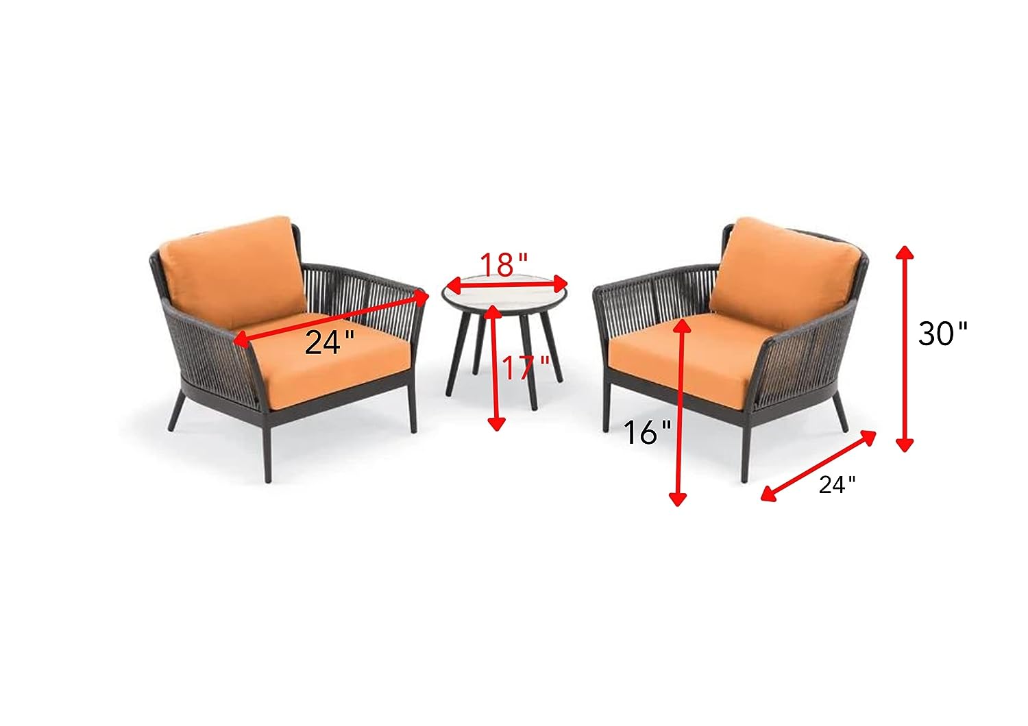 Fabián Outdoor Patio Set| Durable Garden Furniture-2 Chairs + 1 Table Grey-Orange Braided & Rope