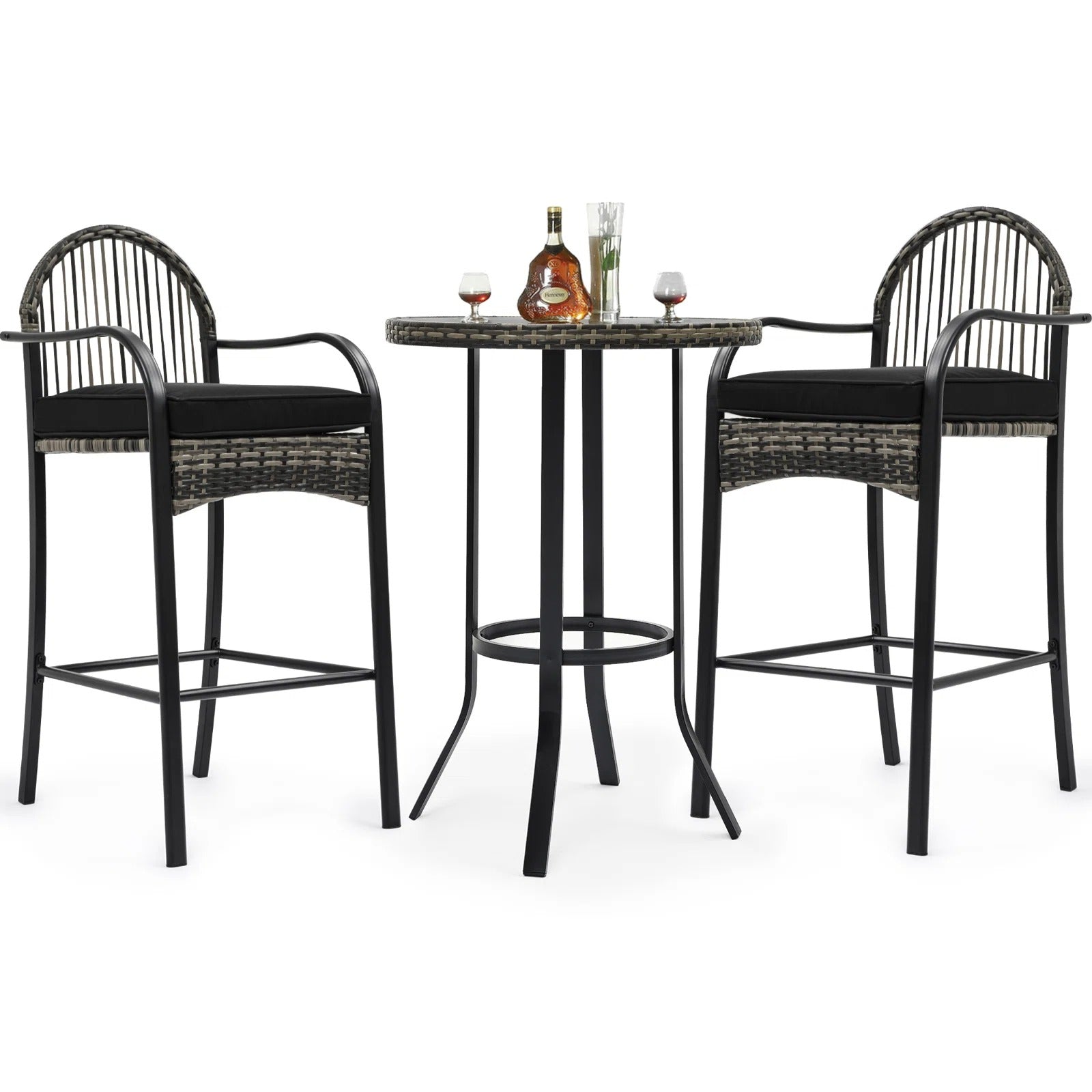 Hisako Outdoor Bar Set| Durable Garden Furniture-2 Chairs + 1 Table Black