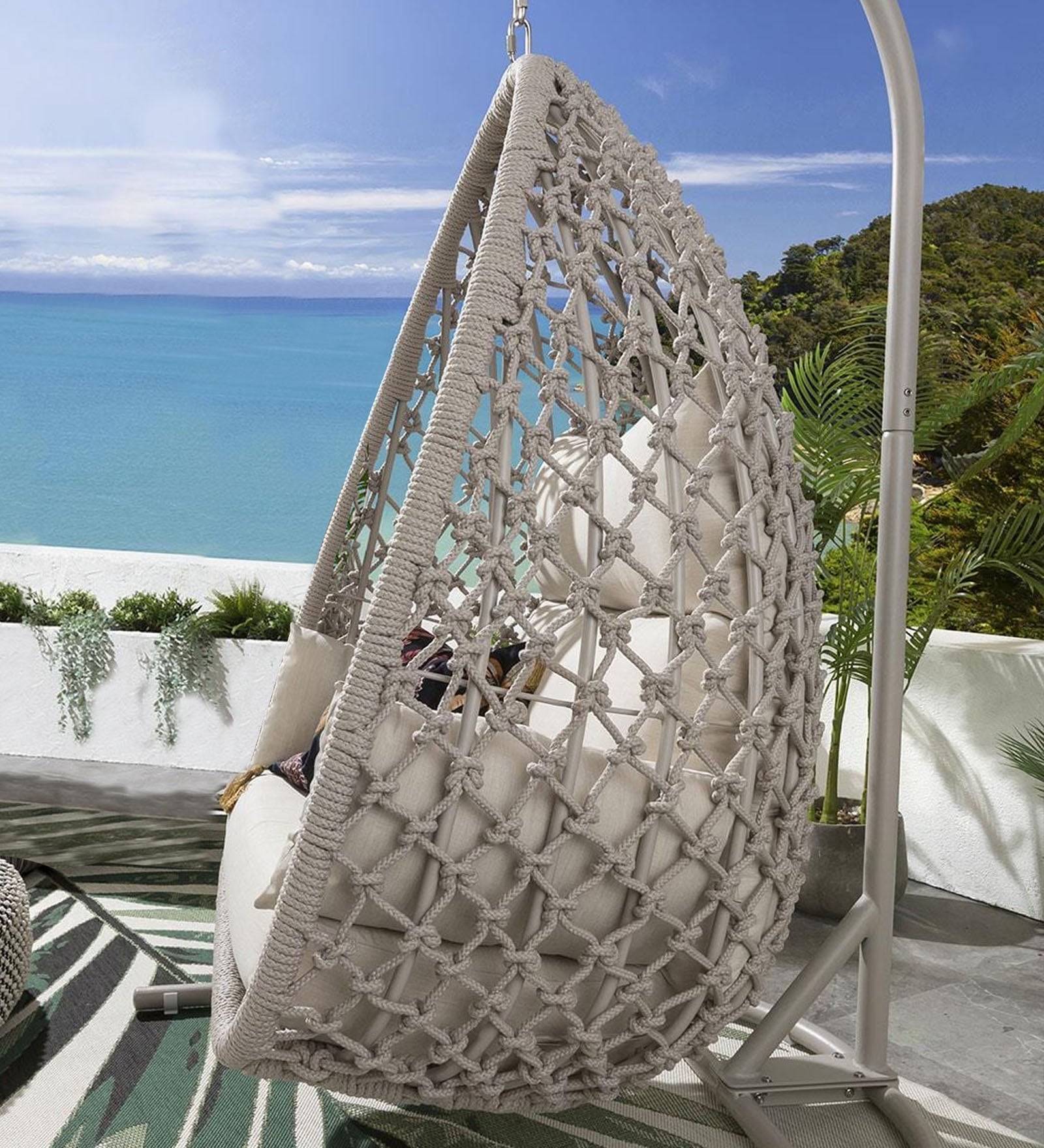 Nadine Single Seater Hanging Swing| With Stand For Outdoor (Natural) Braided and Rope